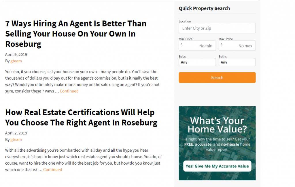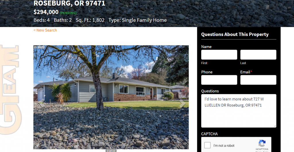 The G Team, for example, a real estate company in Roseburg Oregon, has an incentivized opt-in form on all of their property listing pages.