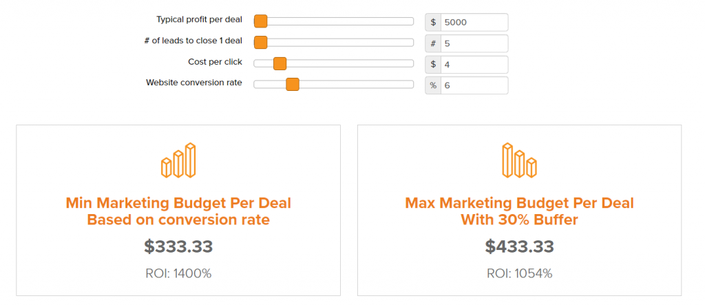 Well, we created this totally free ROI calculator so that you can enter your know-able metrics and determine your budget.